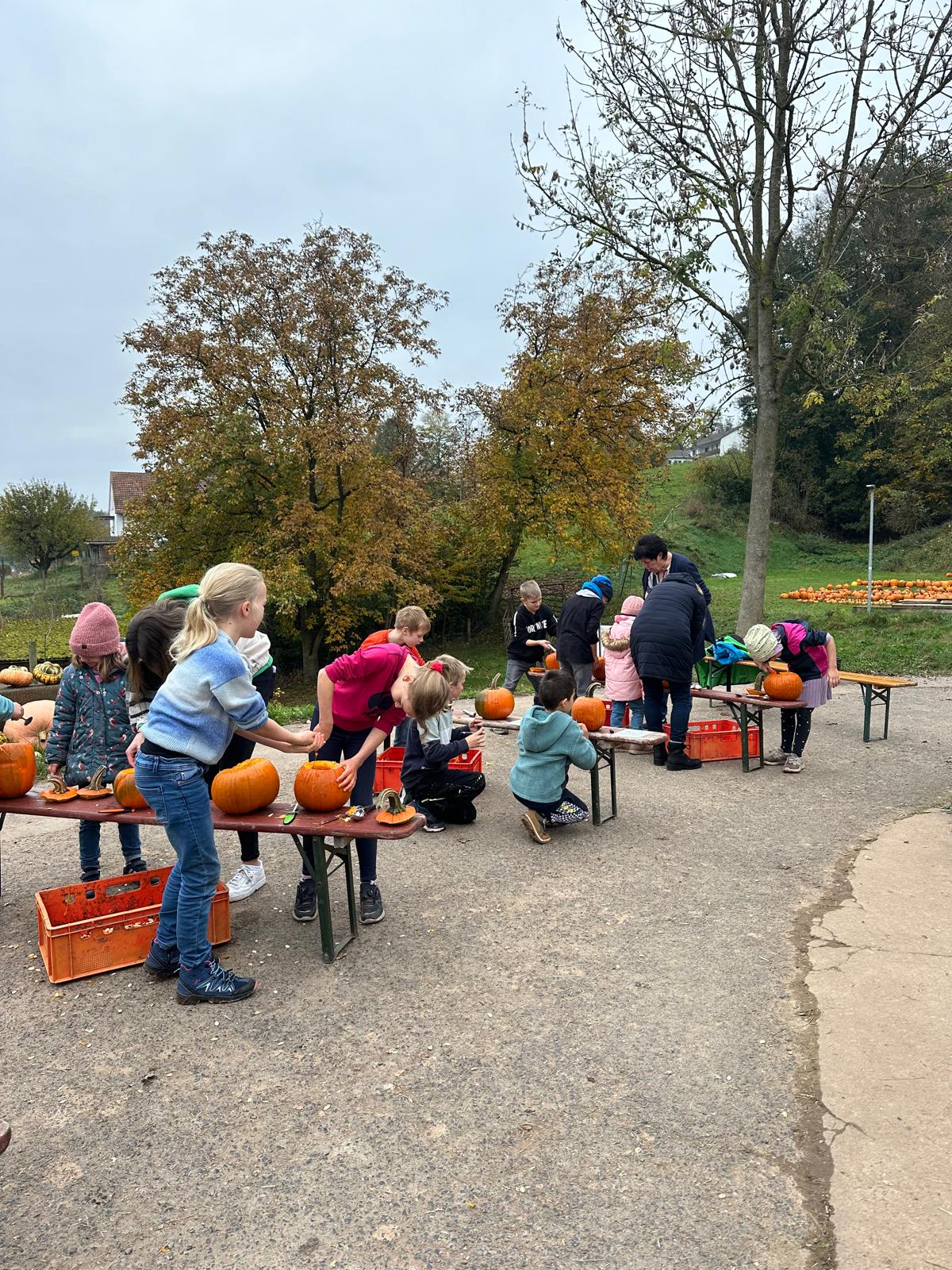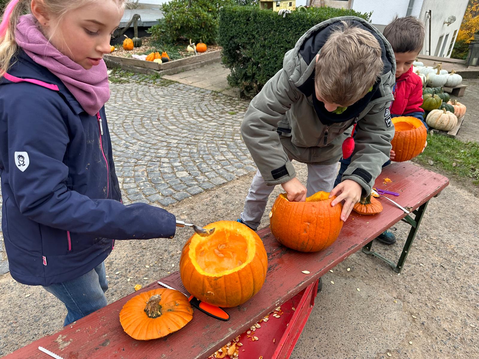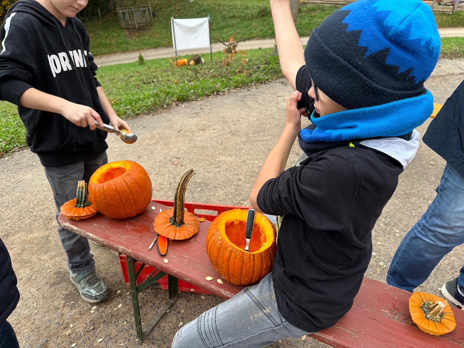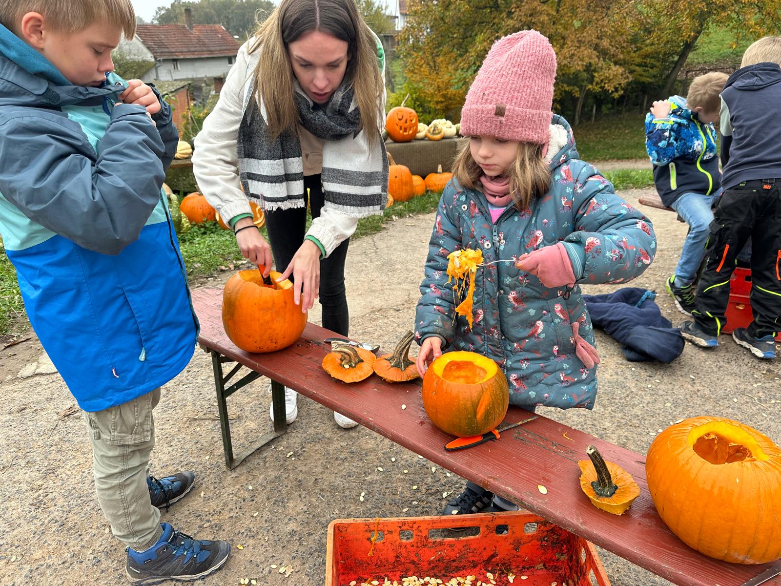 Ferienbetreuung: Kürbisschnitzen auf dem Kürbishof in Braunhausen