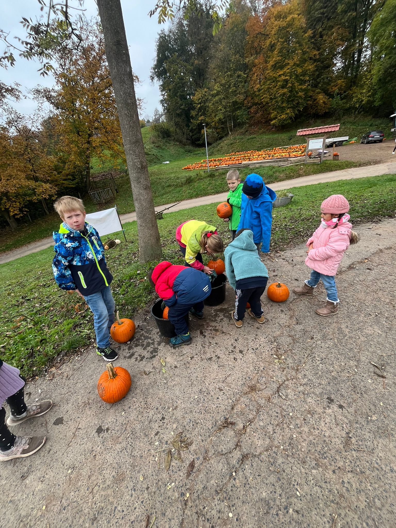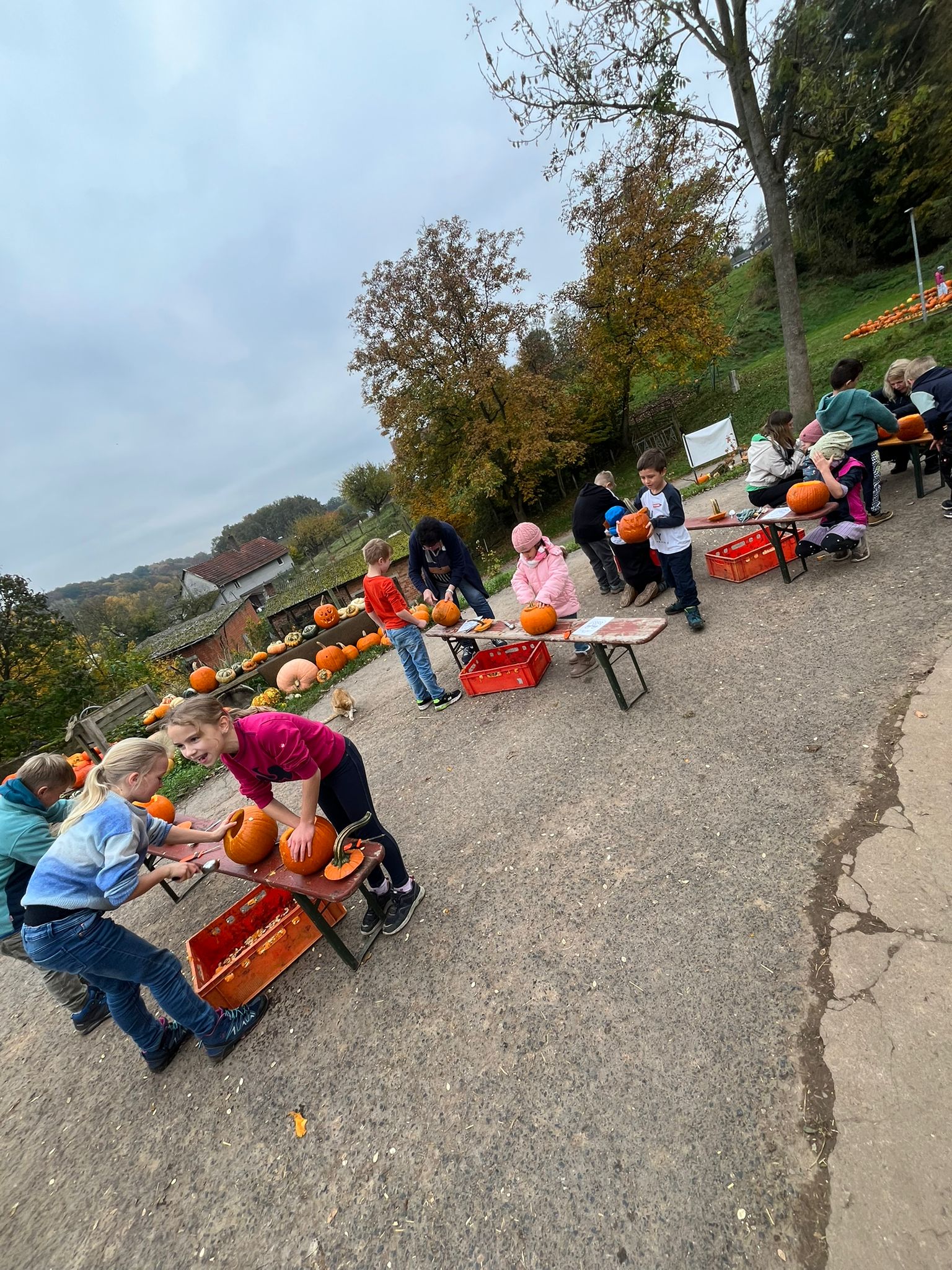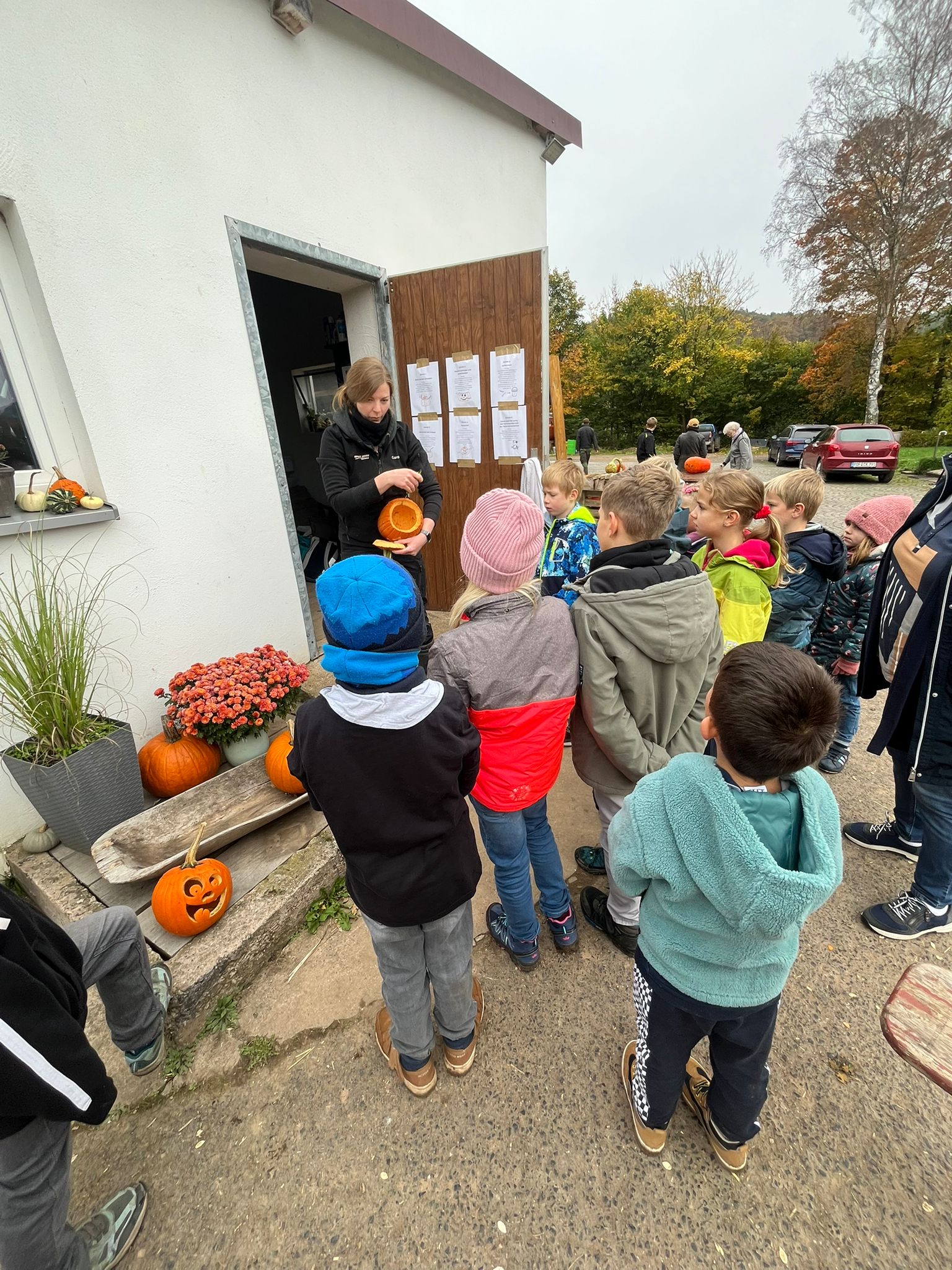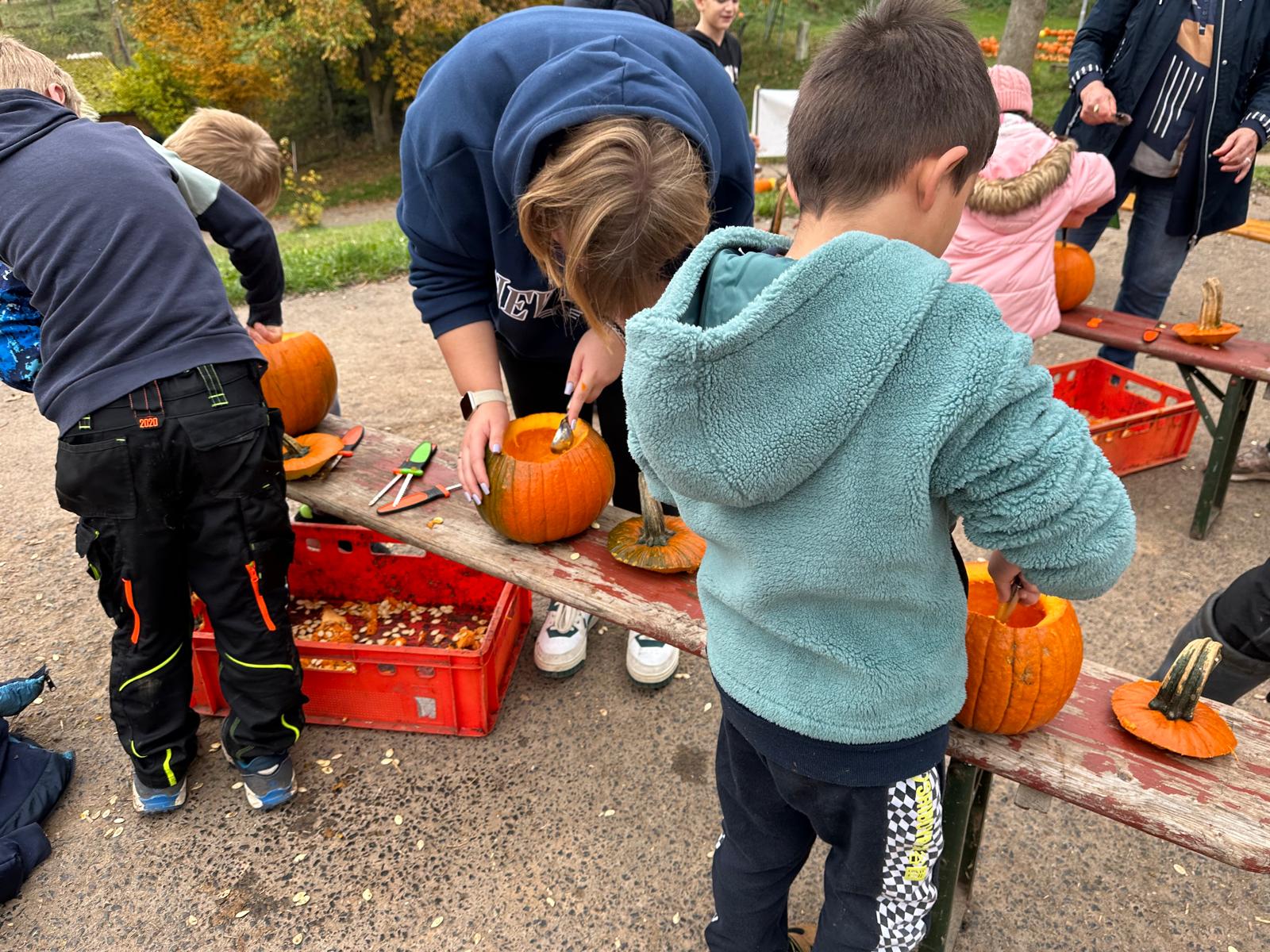 Ferienbetreuung: Kürbisschnitzen auf dem Kürbishof in Braunhausen