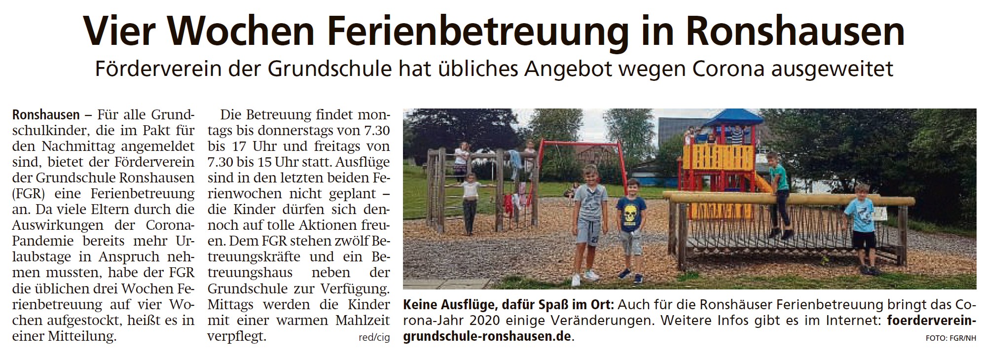 Vier Wochen Ferienbetreuung in Ronshausen (HNA am 04.08.20)